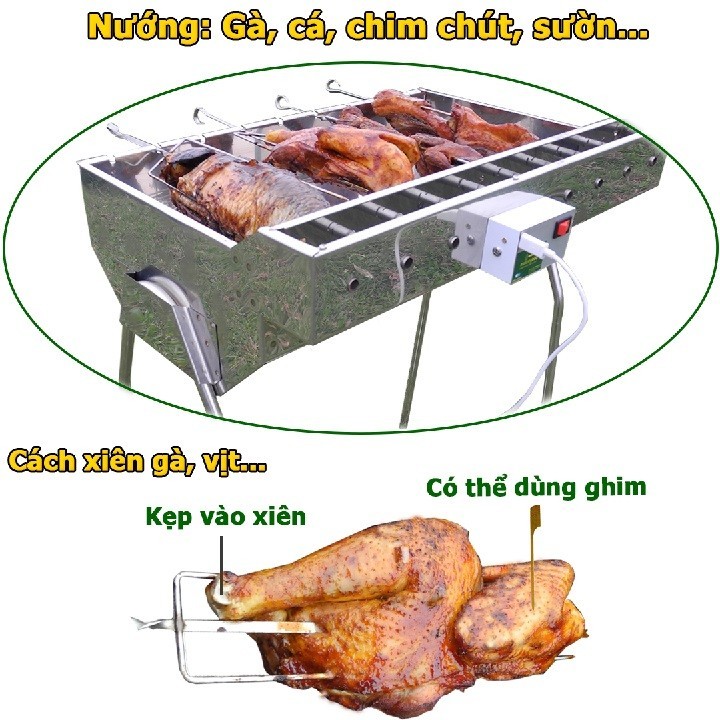 1.Xiên thịt xoay tự động, giúp thức ăn chín đều, thơm ngon, chống cháy siêu hạng đảm bảo an toàn sức khỏe.