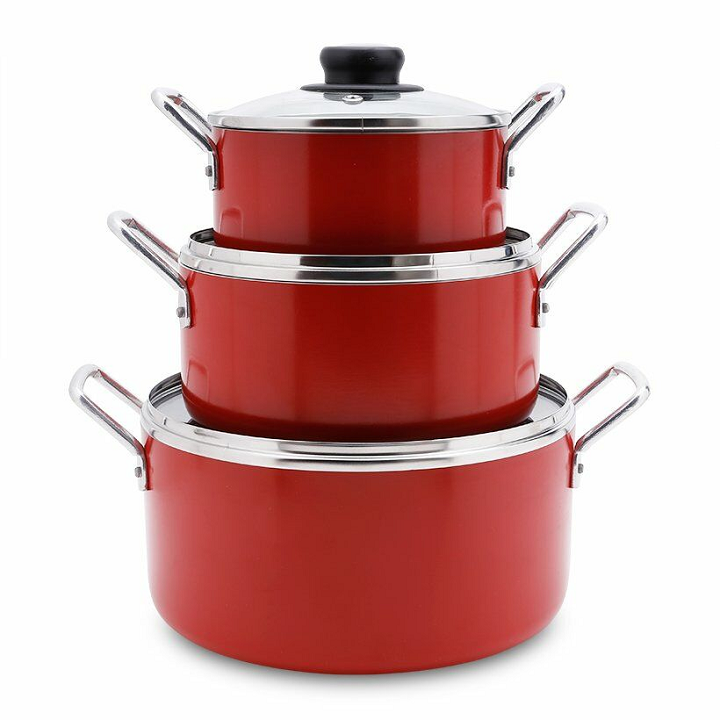 Nắp kính trong suốt giúp bạn quan sát được thực phẩm trong khi nấu thuận tiện, nắp có lỗ thoát hơi tránh trào nước ra ngoài khi thức ăn sôi. Bộ 3 Nồi Nhôm Chống Dính Nắp Kính Mạnh Hùng -Đường Kính 16cm 20cm 24cm có kiểu dáng hiện đại, tinh tế với màu đỏ nổi bật, mang đến phong cách sang trọng cho không gian bếp nhà bạn.